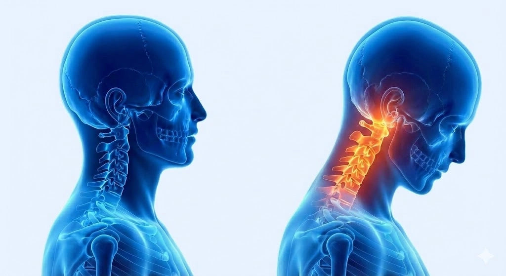 Your snoring isn't caused by your throat. It's caused by Forward Head Posture—years of sitting at desks and looking at screens have compressed your cervical spine, narrowing your airway.
